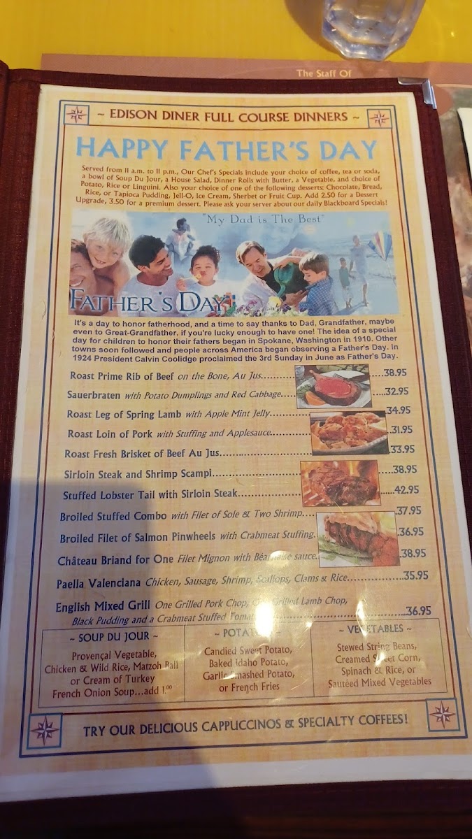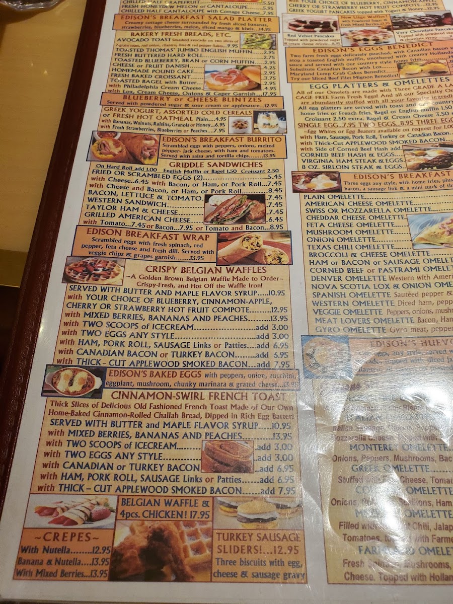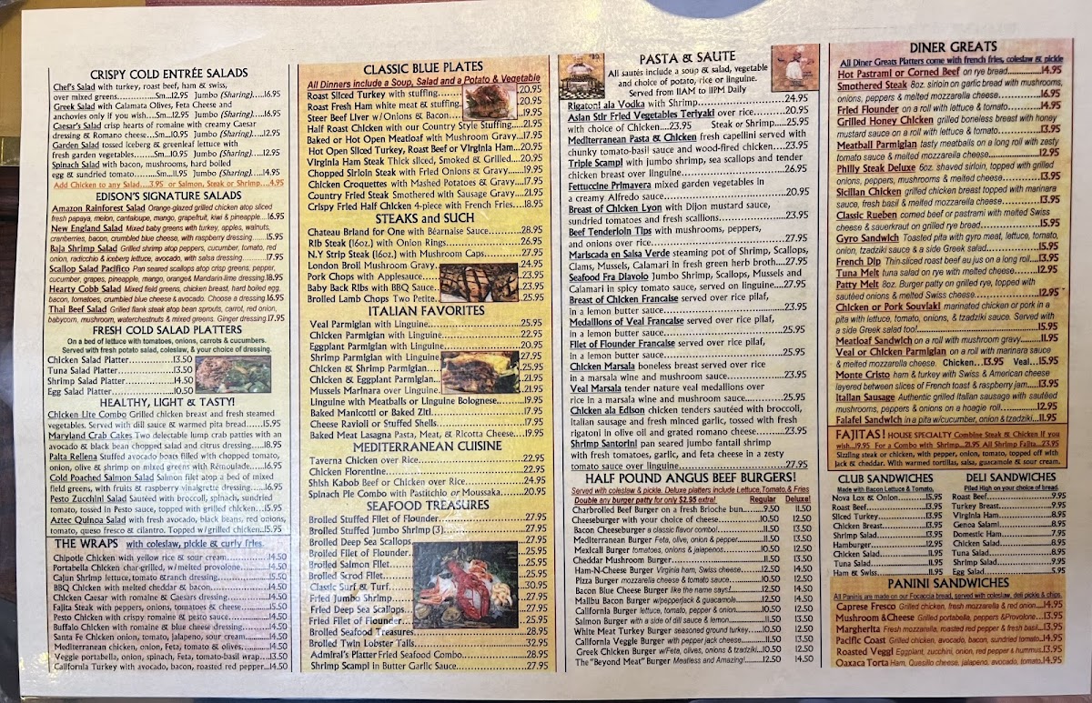 Overall, the menu is structured to support casual dining occasions, whether for a full breakfast, a midday meal, or a lighter snack with dessert and coffee. The variety and portion sizes cater well to families, groups, or individual diners seeking traditional American diner cuisine.